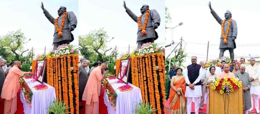 मुख्यमंत्री योगी आदित्यनाथ जी ने प्रदेश के पूर्व मुख्यमंत्री स्व० हेमवती नन्दन बहुगुणा जी की पुण्यतिथि पर आज योजना भवन, लखनऊ में उनकी प्रतिमा के सम्मुख चित्र पर पुष्प अर्पित कर उन्हें विनम्र श्रद्धांजलि दी।